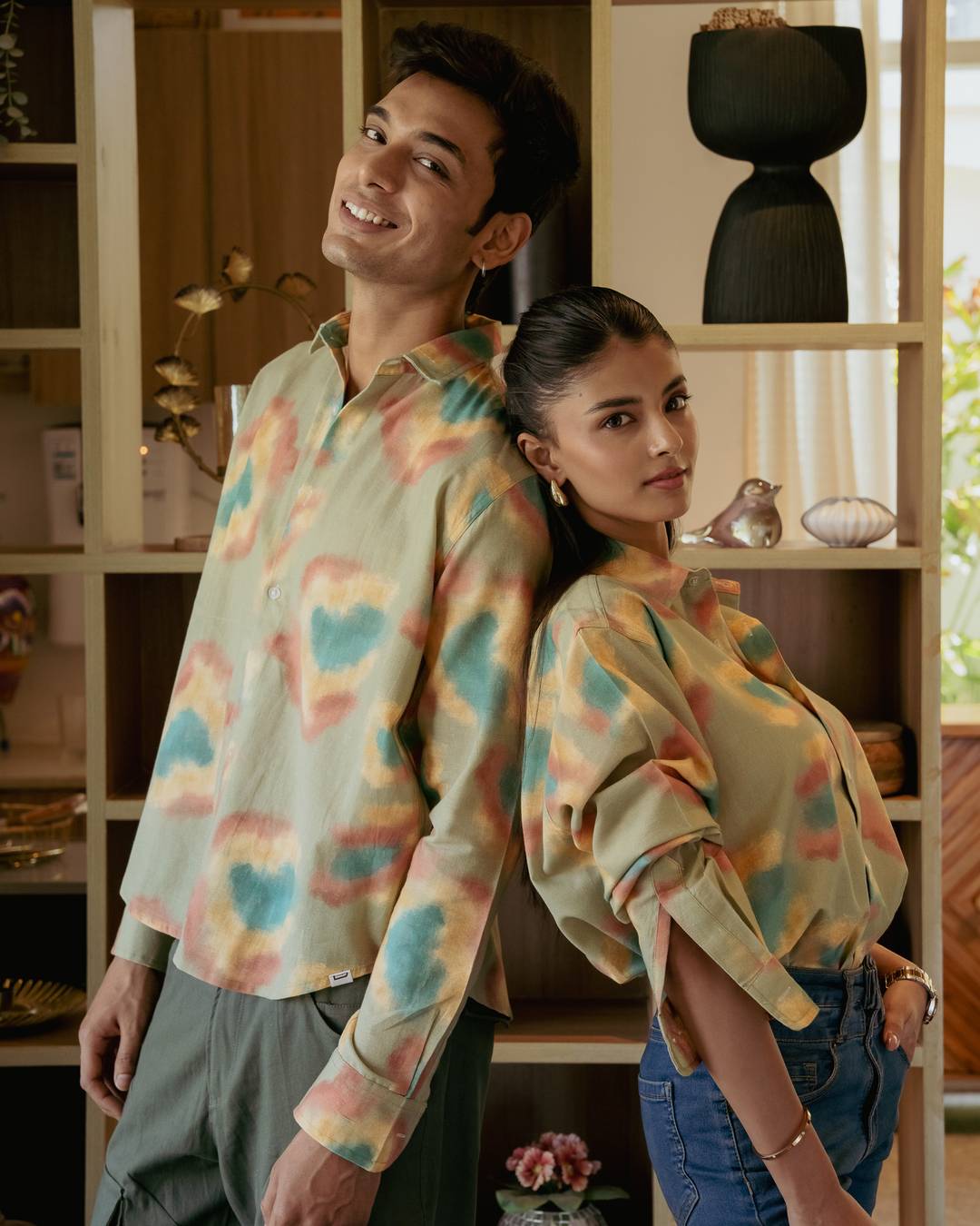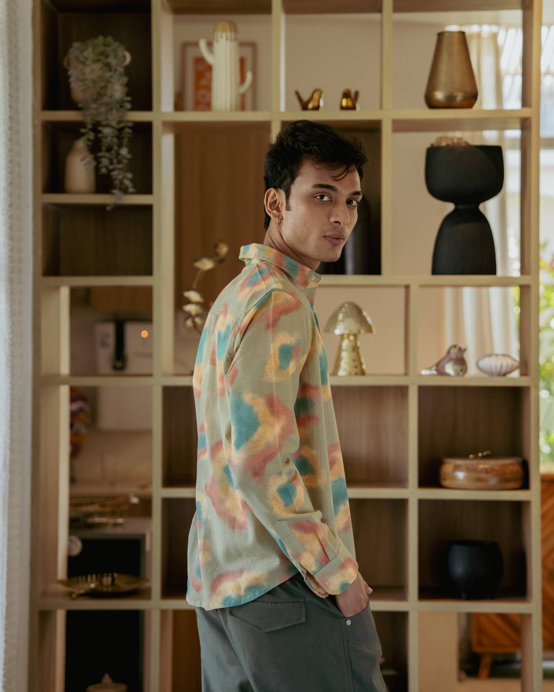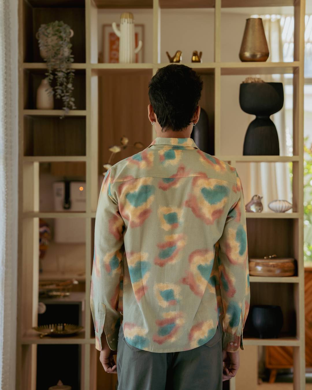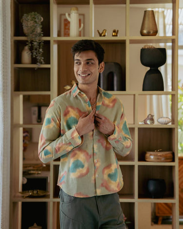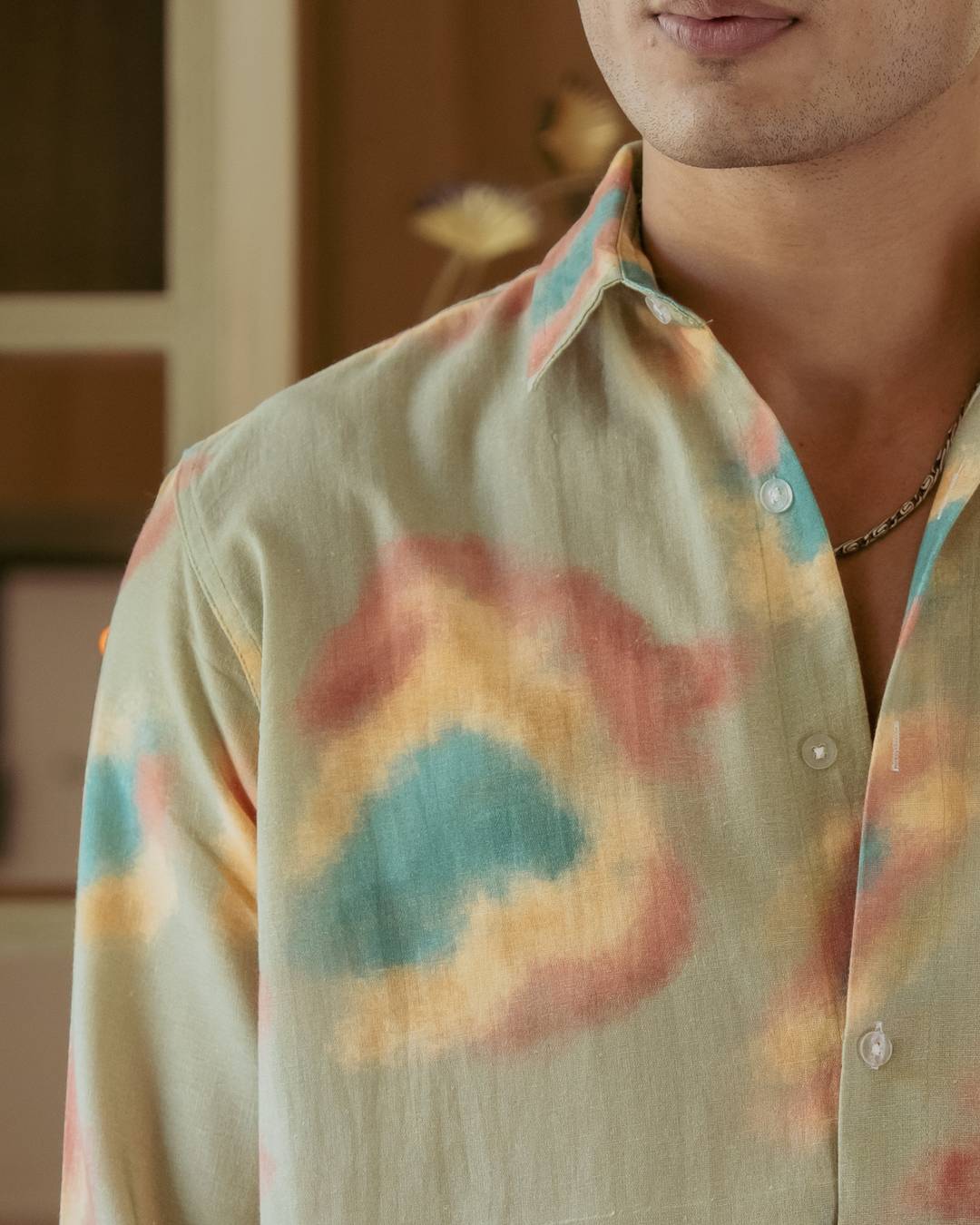 Dreamy clouds of pastel tones float on breathable linen blend fabric, giving a soft, whimsical touch to your look. Perfect for Summer picnics, springtime gatherings, or coastal getaways.