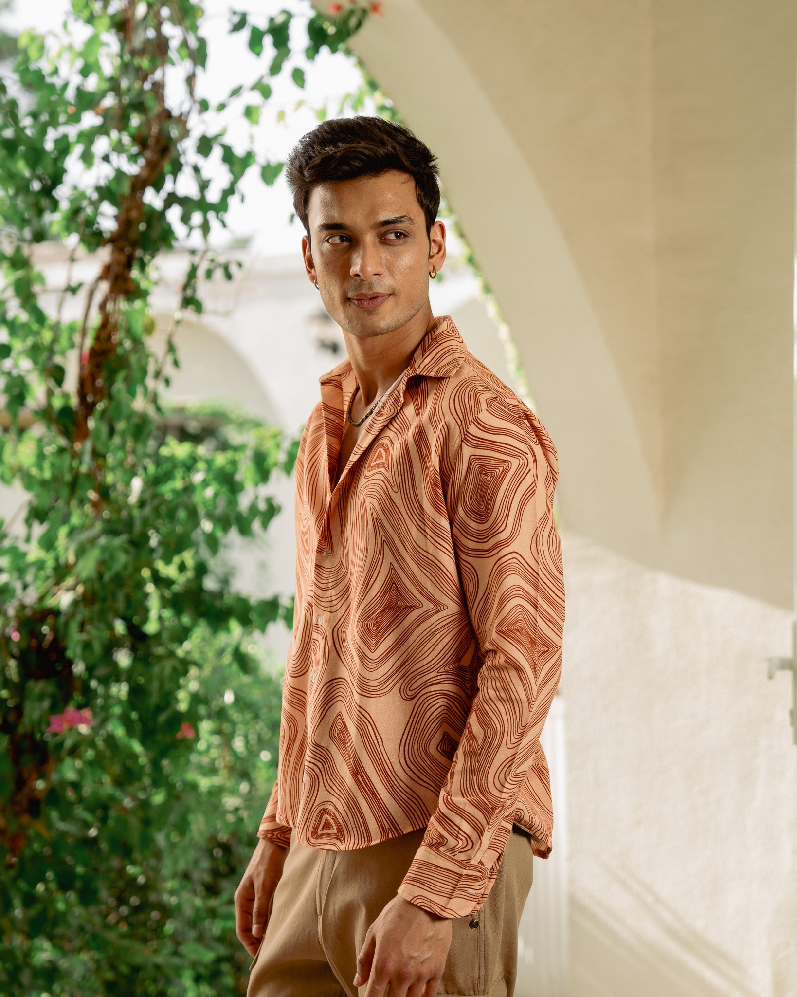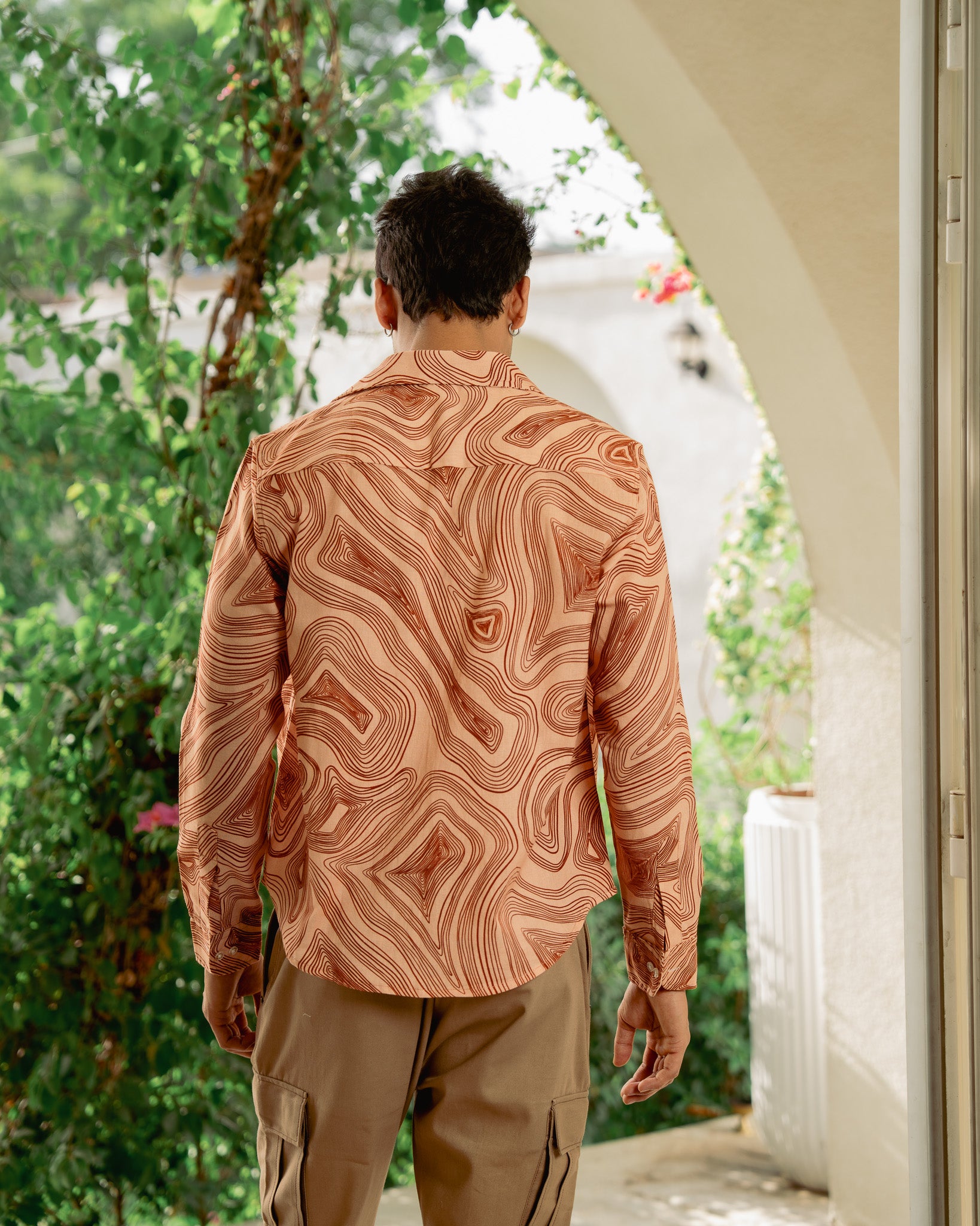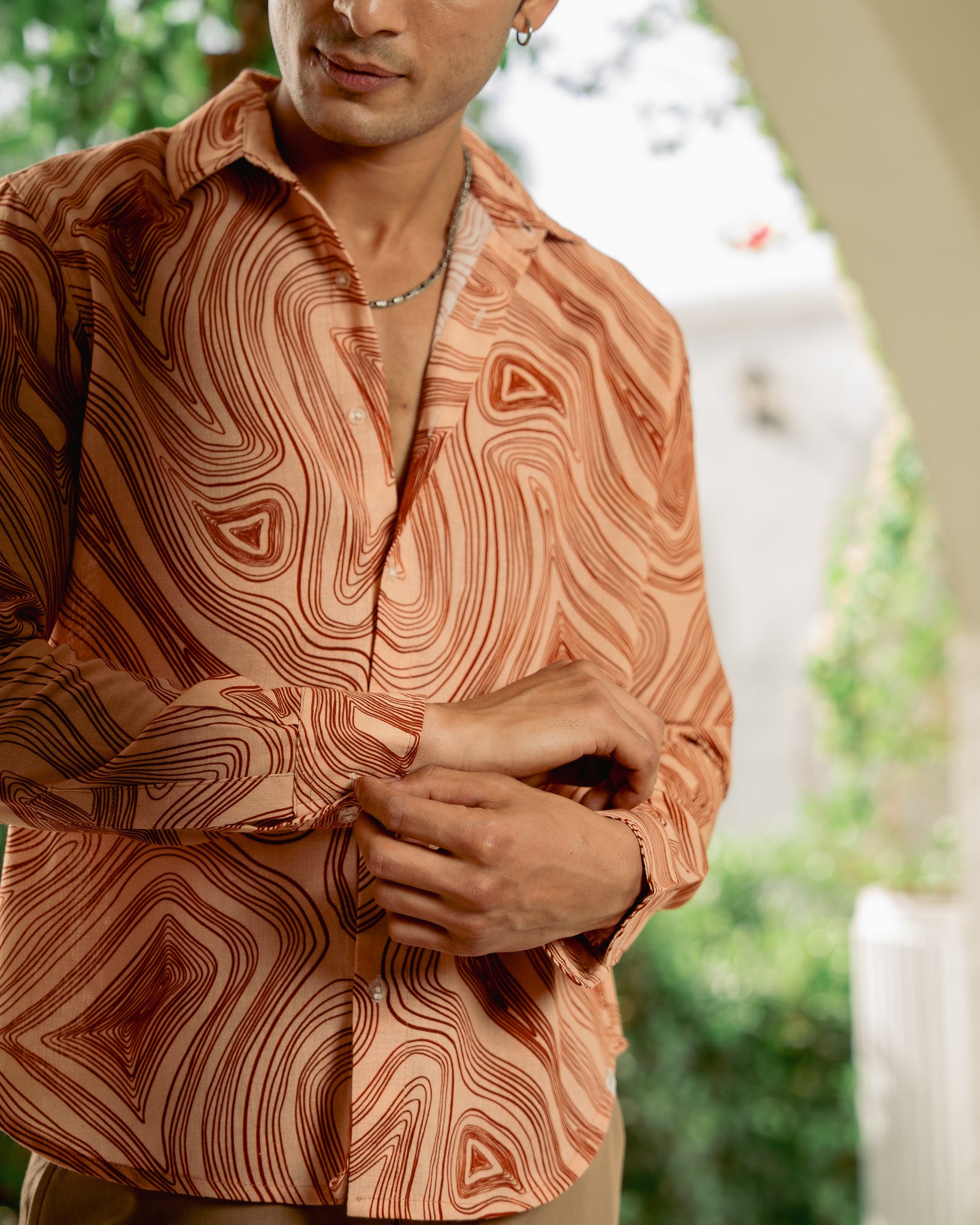 Inspired by natural wood textures, this breathable linen blend shirt offers an earthy aesthetic with timeless swirl patterns. Perfect for Casual brunches, art gallery visits, or nature-inspired events.