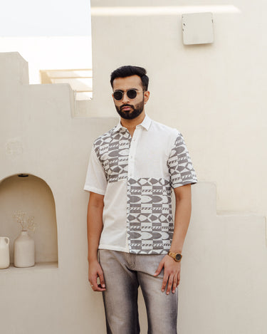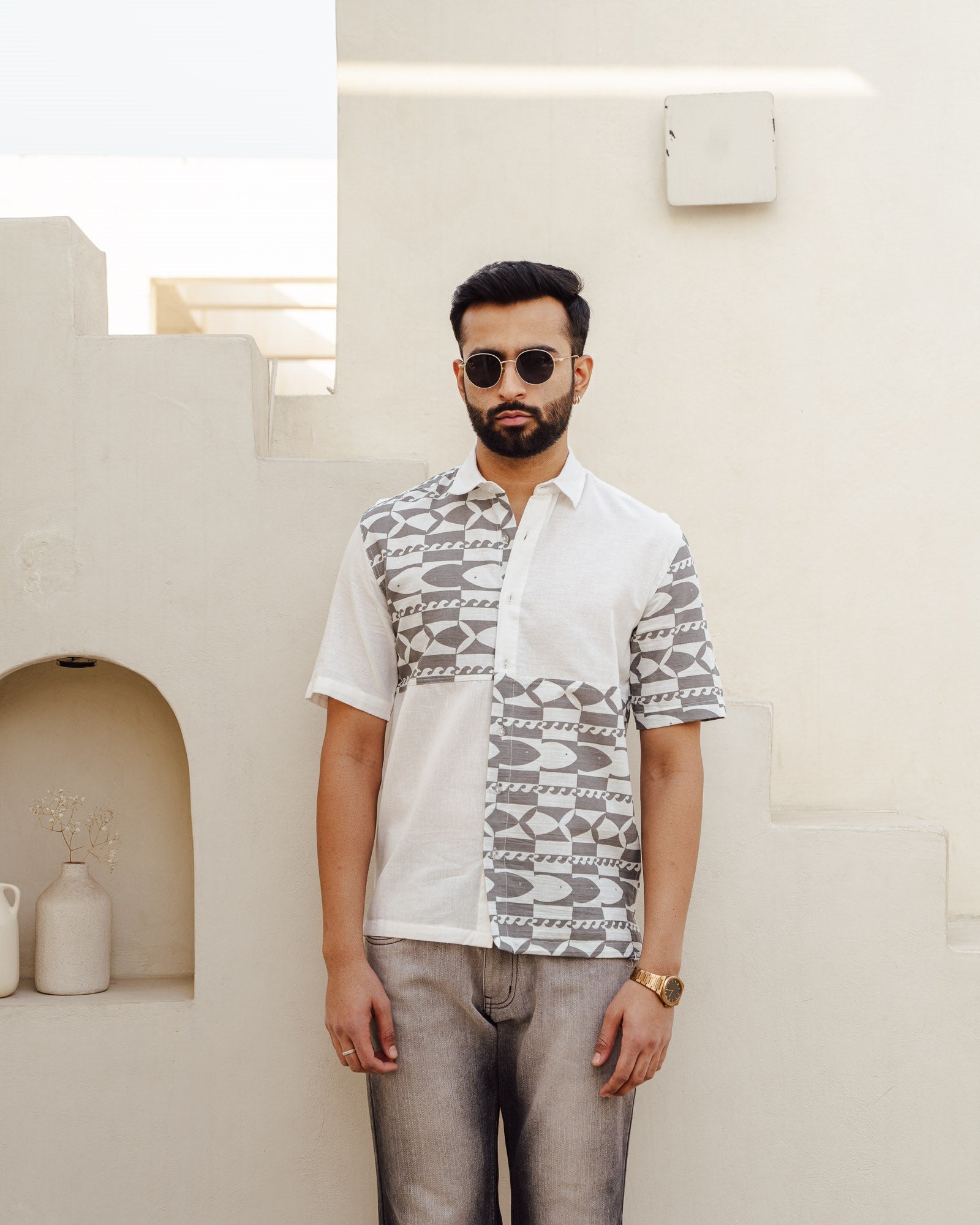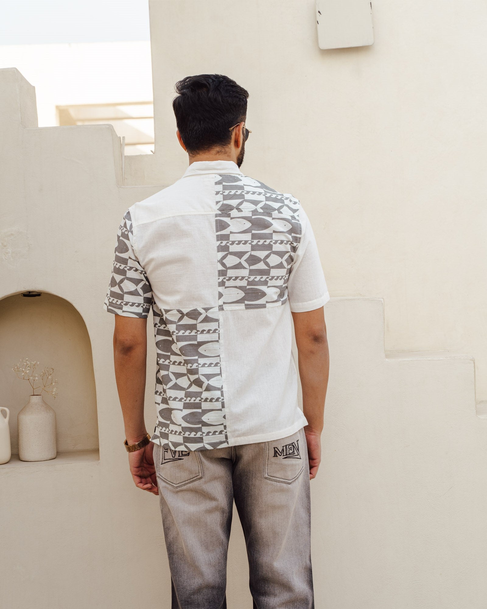 Elegant white shirt sea creature Checks print. Perfect for casual outings, summer brunches, semi-formal office wear, or travel.