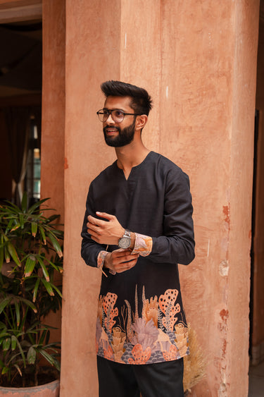 Aquatic Plant Ebony Kurta