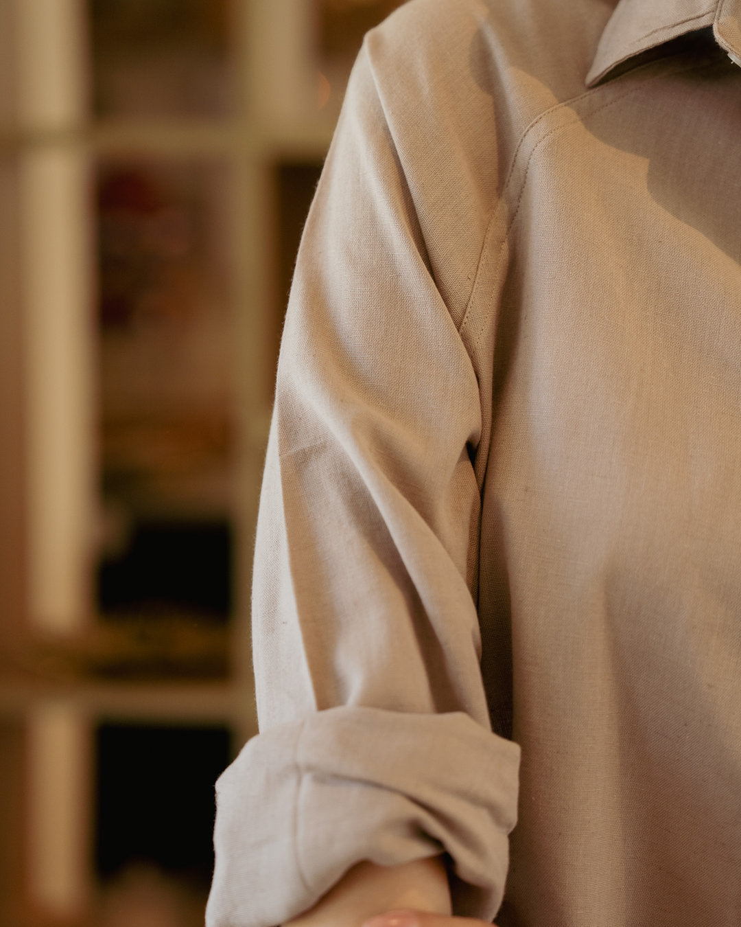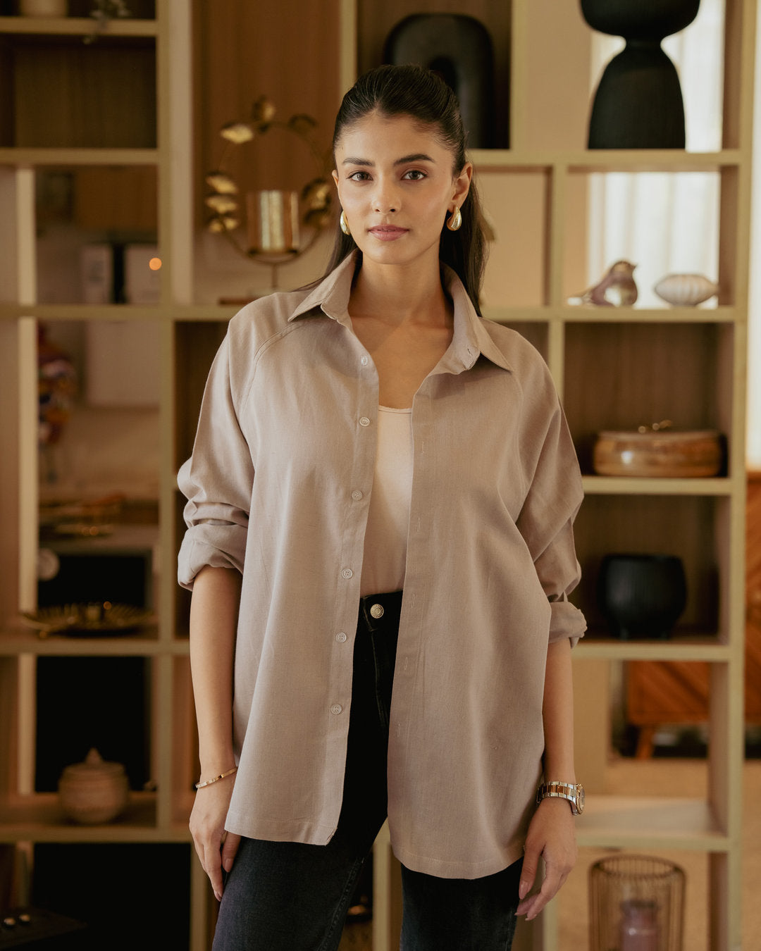 Relaxed-fit raglan sleeve oversized shirt crafted from soft, breathable fabric. Designed for effortless style and comfort, it pairs seamlessly with trousers or denims—perfect for all day wear in any season.
